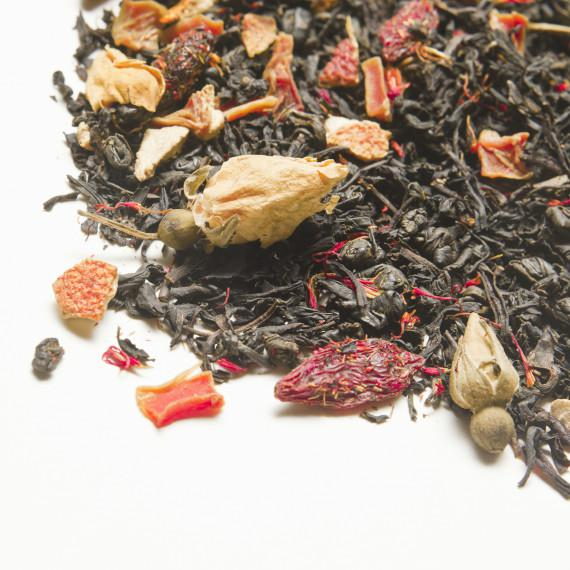 Ingredients: Black tea, orange peel, pomegranate peel, rosebuds, safflower petals, goji berries, natural flavorings.