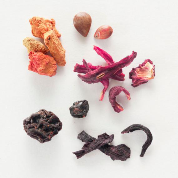 The rich, fruity notes of ripe cherries and tart black cherries mingle harmoniously with the mellow sweetness of apple and raisin, while the subtle heat from cinnamon and ginger adds a refined spiciness, making this blend both soothing and stimulating. Enhanced by the vibrant hues and slight tang of karkadè (hibiscus), this tisane is a true celebration of flavor and aroma.