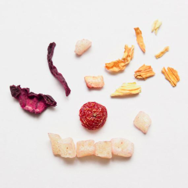 Ingredients: Pear, hibiscus, rose petals, pineapple, cinnamon, sunflower petals, rosehip, natural flavors.