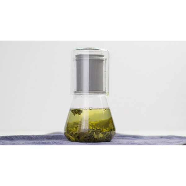 - Ampoule-shaped borosilicate glass teapot