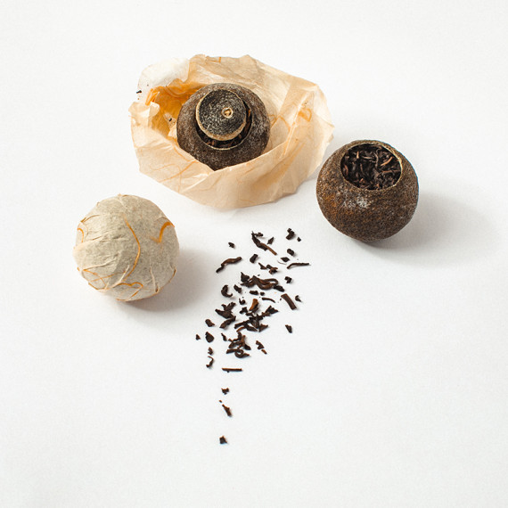 - Steep an entire mandarin filled with Pu Erh leaves in a teapot (preferably under 400ml).